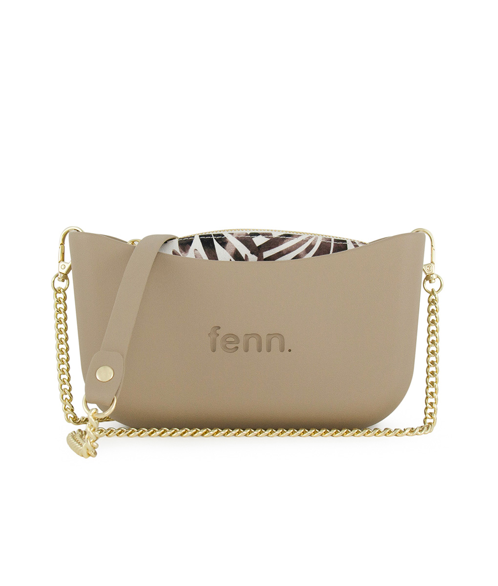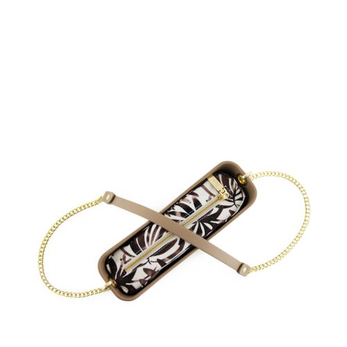 Classic Collection – Stone – Pattern Inner – Gold Zip – Stone/ Gold Chain Handle