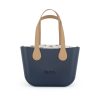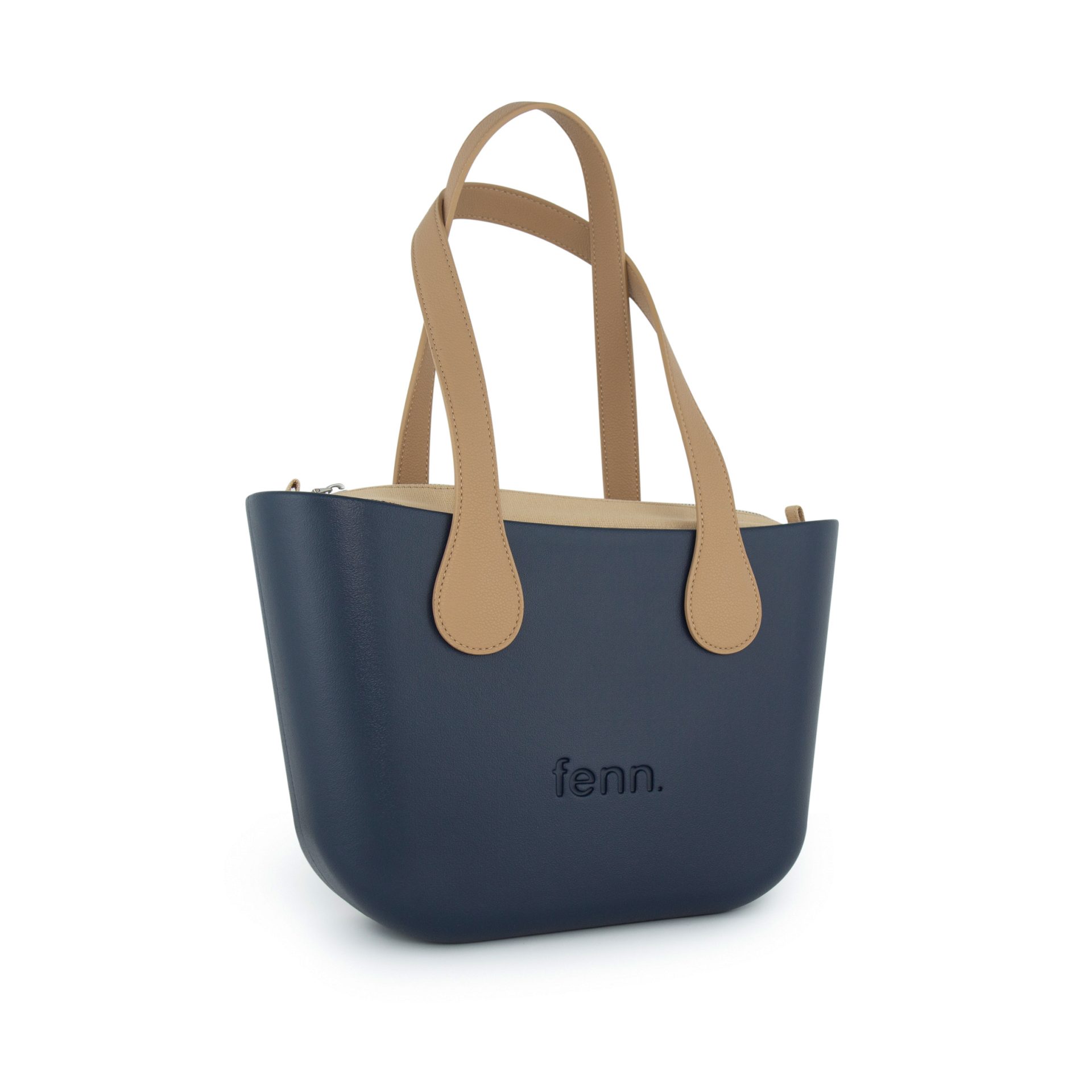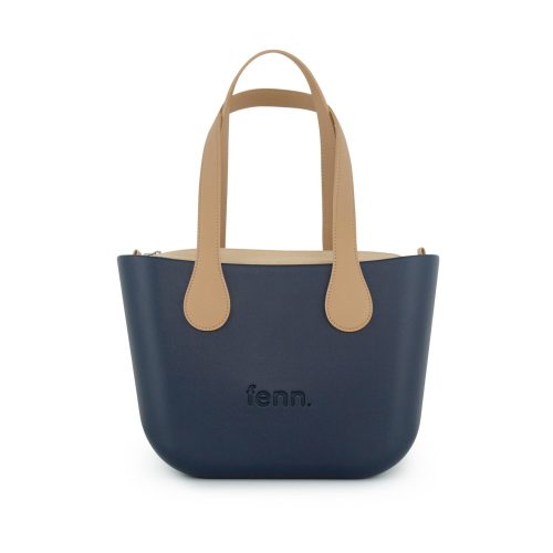 Petite – Navy – Tan Inner – Silver Zip – Light Tan Flat Handle